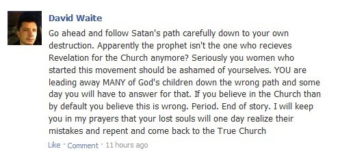 Look out for us in the future as we continue to try to draw attention to the gender problems we’re facing in the Mormon community, and as we try to find a way to fix them.