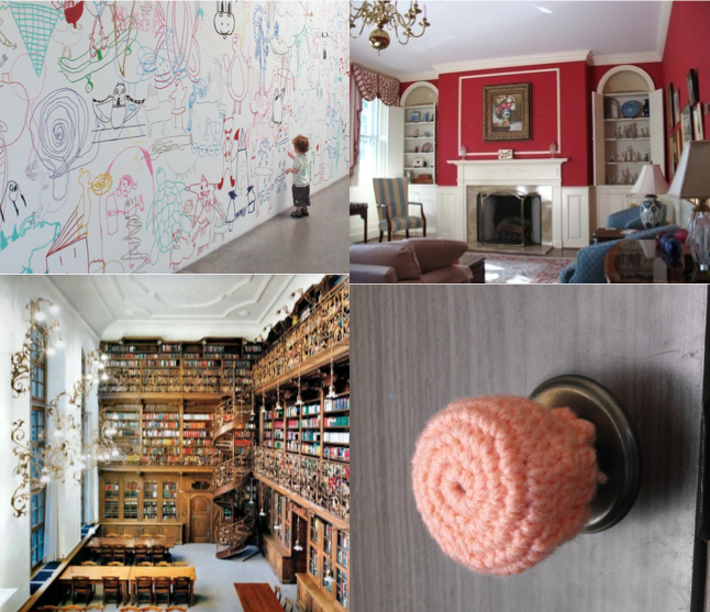 The walls are lined with bookshelves where they are not covered with paintings and children’s drawings. Some rooms have high ceilings that inspire reflection and solitude, while other rooms have chalkboards for walls and are strewn with children’s toys, with knitted covers on the doorknobs to stop children from escaping into the hallway unattended.