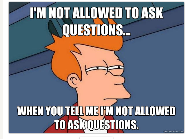When I see this doctrine of ask no questions being enforced in a church setting it saddens me. What good has ever come from enforcing a culture of blind followers? We all follow of course, to one extent or another, but there is a huge difference in being a willing, assertive, follower, and a blind one. Normally this is voiced in the question “Who are we to question God’s plan?”