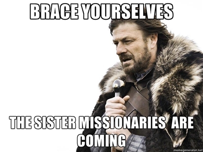 In every area but one of my mission, my companion and I were the only hermanas in a sea of elders. All of the elders seemed to know each other – there was a general camaraderie, a general brothership. Each brother was welcomed to his area with gusto and kindness by at least nine others. *I* was extended a hug from my companion and the stiff MTC handshakes of elders who were fearful of getting too close to us.