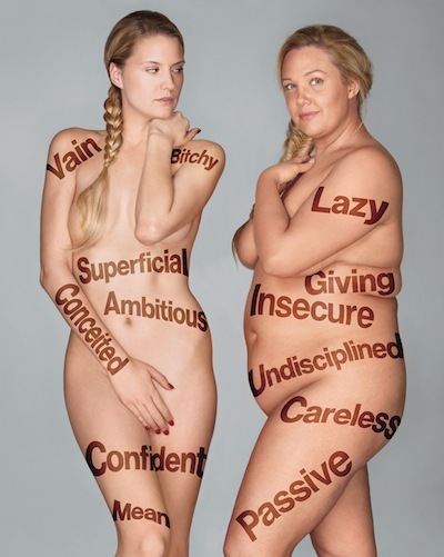 You’re equating weight and health. I weight 260 pounds, am pushing thirty, and I have normal cholesterol and blood pressure. It’s true we should eat healthy, but as the author is pointing out, you cannot make any assumptions of how someone eats or exercises based on the size of that person.