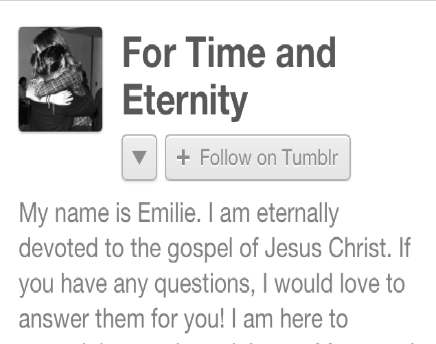Ok, well this seems fine, a member joins tumblr to spread her beliefs and answer any questions, this is what the church wants more of right? What could go wrong? Well…right off the bat Emilie goes full passive aggressive and calls out women who don’t want to get married, which I feel is a good ice breaker to use when sharing the gospel to complete strangers. Grab some popcorn and enjoy the fallout.