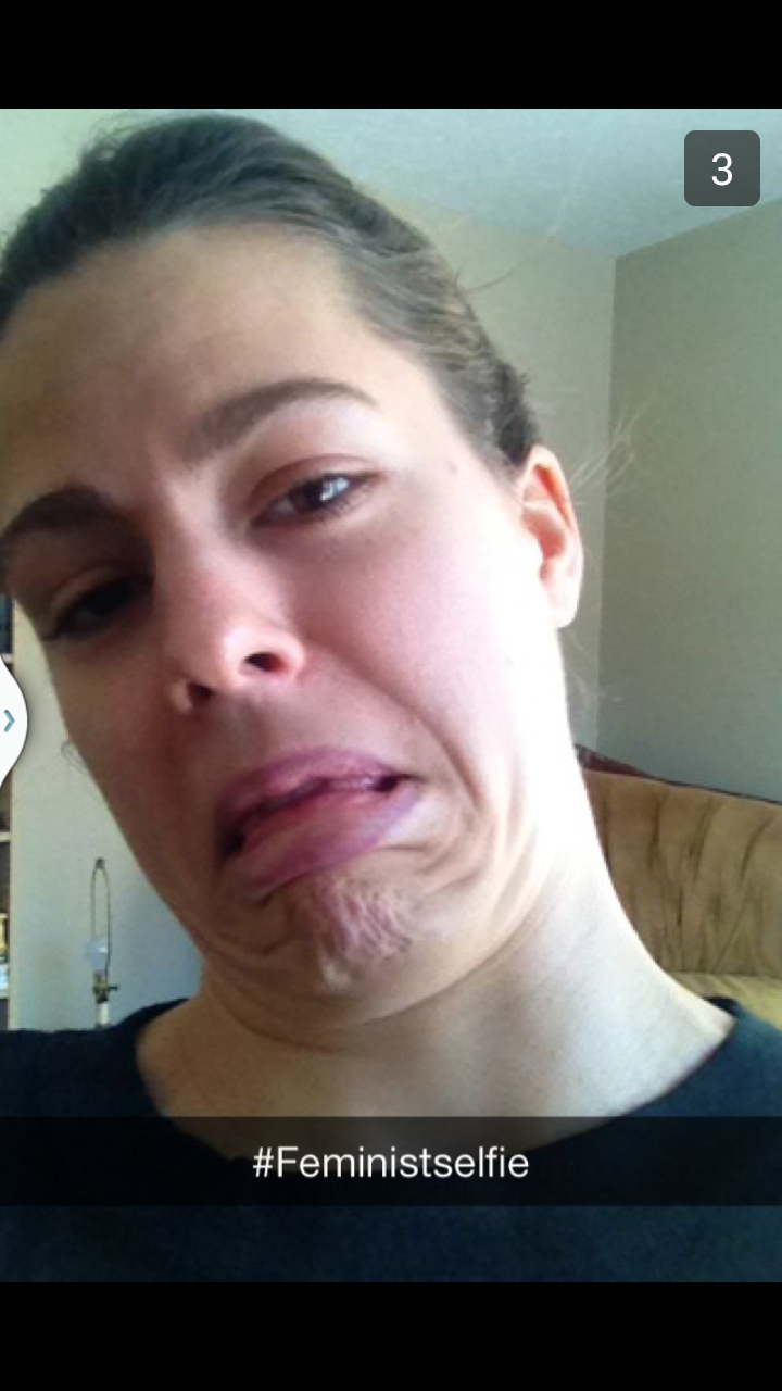 On Snapchat, however, I often take photos of my face that are specifically ugly and intentionally send them out to be viewed, because I want to be funny. I deliberately eat like our national symbol of unladylike eating because (at least according to my baby sister) it was hilarious. I’m definitely not alone. Youths of today, especially teenage girls, are so excited to take ugly, comical selfies and send them to their friends via Snapchat that even the olds are catching on. I recently heard an NPR reporter (who I imagine was drinking out of a mug as old people are wont to) clumsily try to explain that the primary uses of Snapchat are sexting and competing to see which teenaged ruffian can make the most strange/horrifying/amusing facial expression. You know a trend has been hegemonically legitimized when someone talks about it in the same sentence as they define the word “sexting” and drink out of a mug.