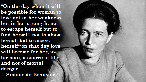 Love this! I now want to read Beauvoir and learn more about her! 🙂 I agree that marriage can only be equal when both spouses see themselves as equal partners, not the man and “the other”.