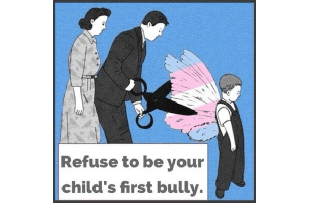 Calling a “trans” child by their birth name shouldn’t be a big deal. If we’re all about removing differences in gender, then calling a trans daughter by her given name “Emily” (for example), or trans son “Mark,” shouldn’t be a big deal. What’s in a name anyway? Also, you are putting unnecessary pressure on parents to affirm children’s identity. What if they are God-fearing people, know that God has created TWO identities – male and female – and realize that if they don’t teach their children the principles of the Gospel they will be held accountable to God? And now you’re telling them no, listen to their children’s and world’s voices over God’s? You’re forcing them to make a choice, and if they listen to you, they will have to face God’s chastisement later on. Do you really want them to run that risk? You admonish parents to not be their children’s first bullies. But by pressuring them to risk being punished by God, you are being bullies to the parents.