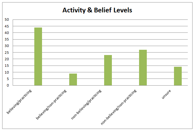 Now onto responses regarding church activity and beliefs…